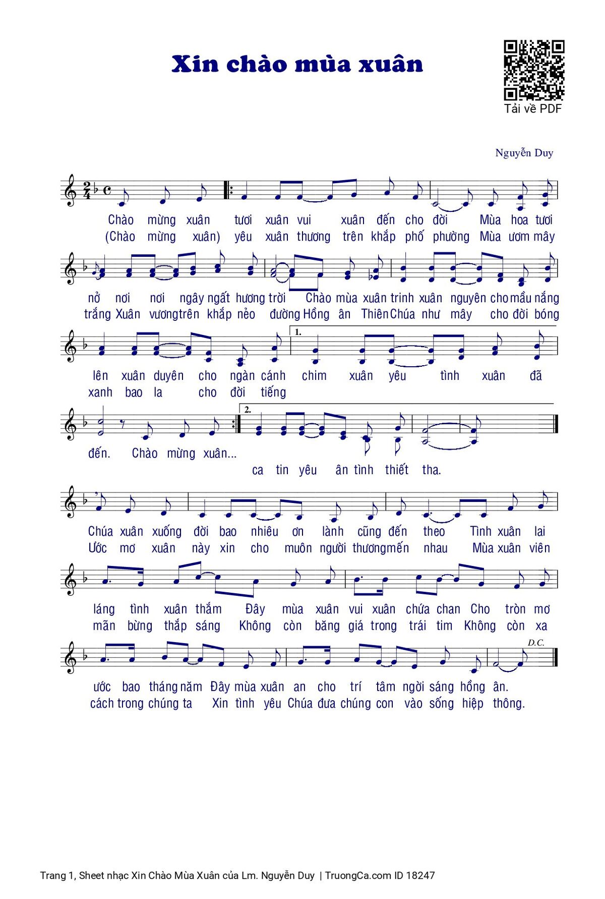 Các sheet PDF tương tự Xin Chào Mùa Xuân: