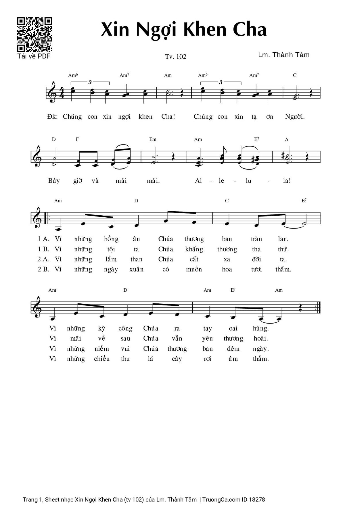Các sheet PDF tương tự Xin Ngợi Khen Cha (tv 102):