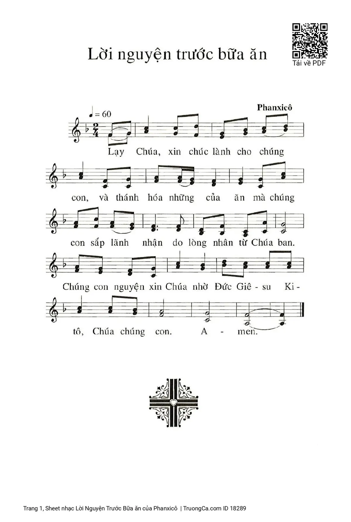 Các sheet PDF tương tự Lời Nguyện Trước Bữa ăn: