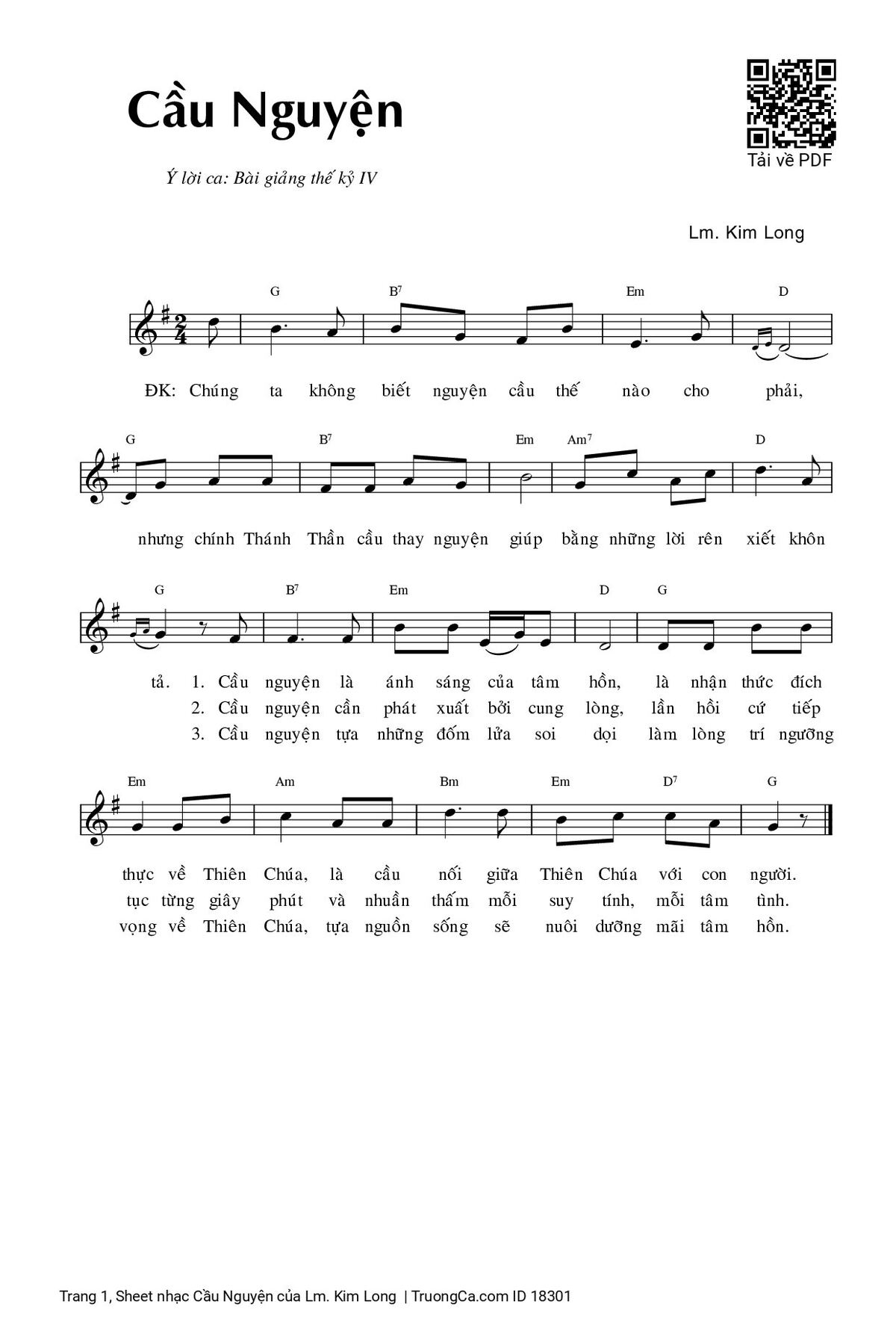 Chọn nút dấu + để tăng tông lên nửa cung, nút dấu - để giảm tông xuống nửa cung. Rê chuột vào hợp âm để xem các thế bấm hợp âm của bài hát Cầu Nguyện.