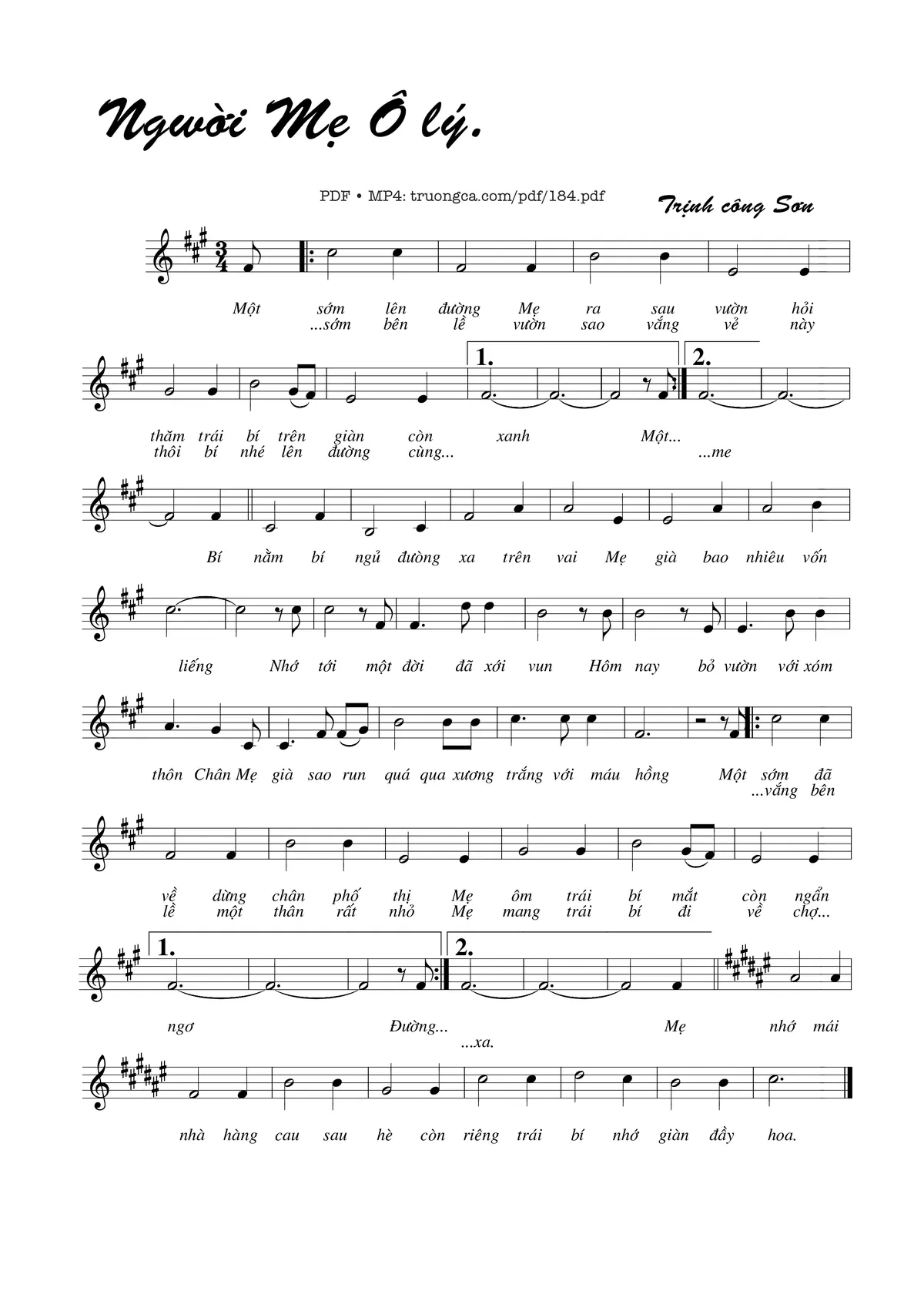 Trịnh Công Sơn Một sớm lên đường mẹ ra sau vườn [PDF] [Sheet] [Lời H.A] [Mp4/Midi]