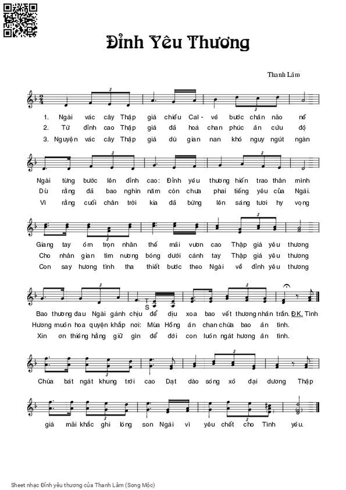 Thanh Lâm (Song Mộc) Ngài vác cây hập giá chiều Can vê bước chân não nề [PDF] [Sheet] [Lời H.A] [Mp4/Midi]