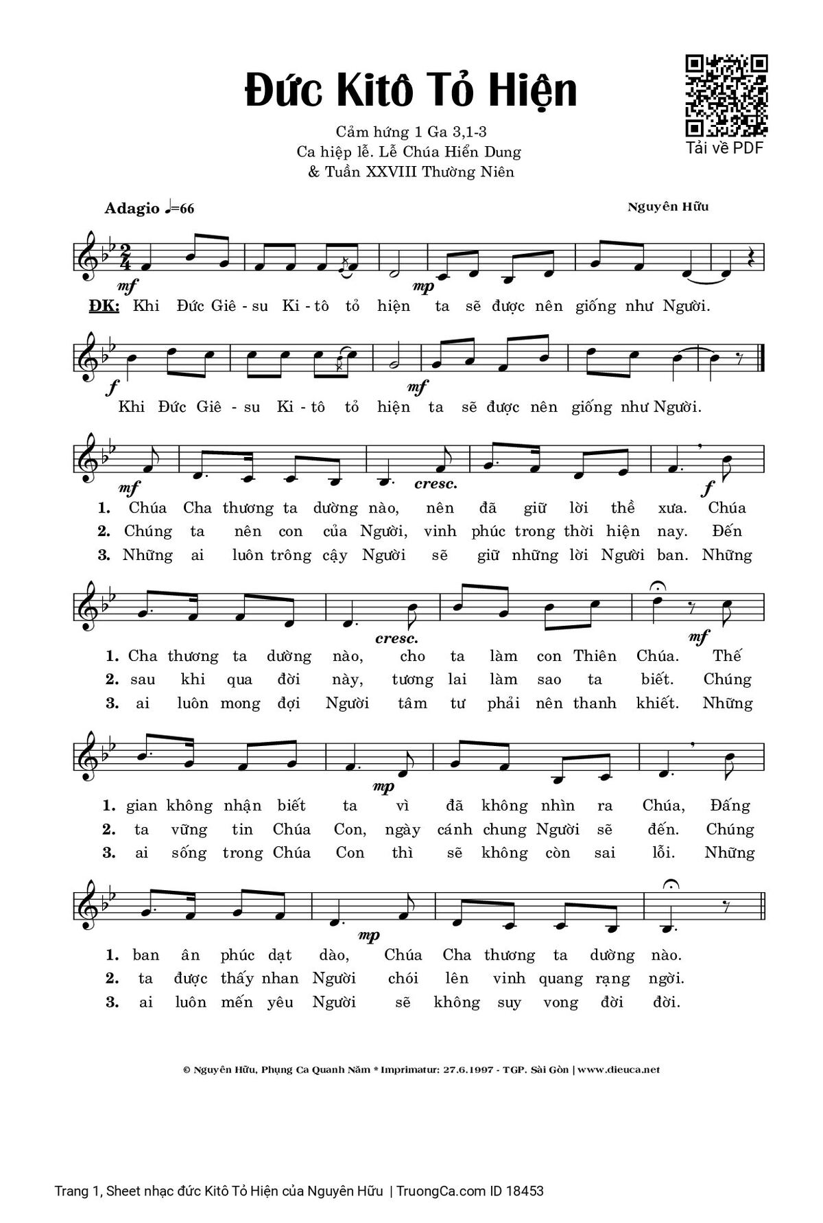 Các sheet PDF tương tự đức Kitô Tỏ Hiện:
