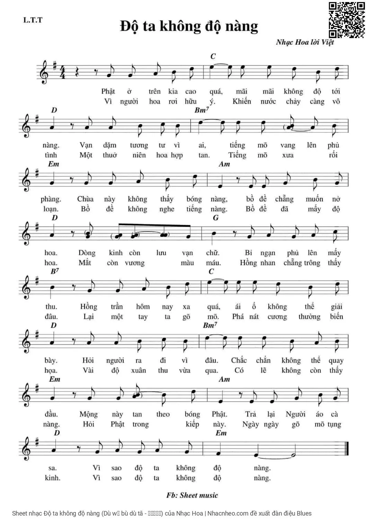Nhạc Hoa Phật ở trên kia cao quá Mãi mãi không độ tới nàng [PDF] [Sheet] [Lời H.A] [Mp4/Midi]