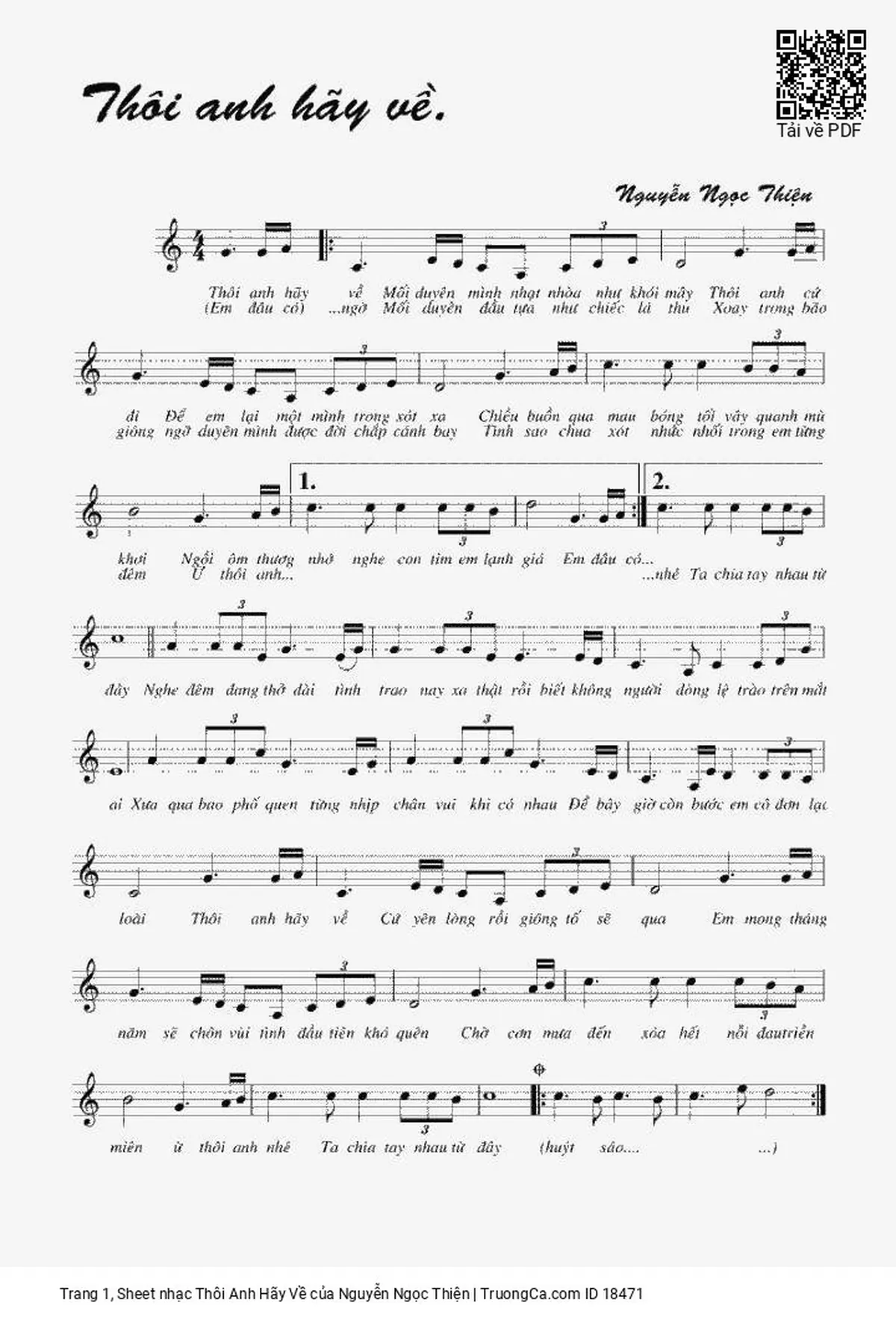 Trang 1 của Sheet nhạc PDF bài hát Thôi Anh Hãy Về - Nguyễn Ngọc Thiện