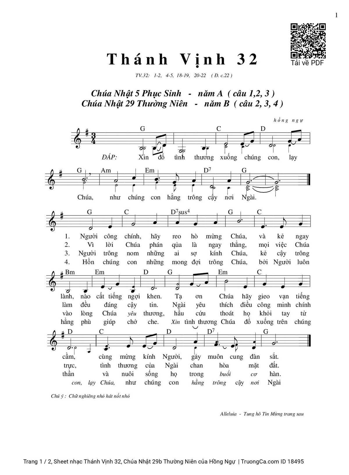 Các sheet PDF cùng tên Thánh Vịnh 32, Chúa Nhật 29b Thường Niên: