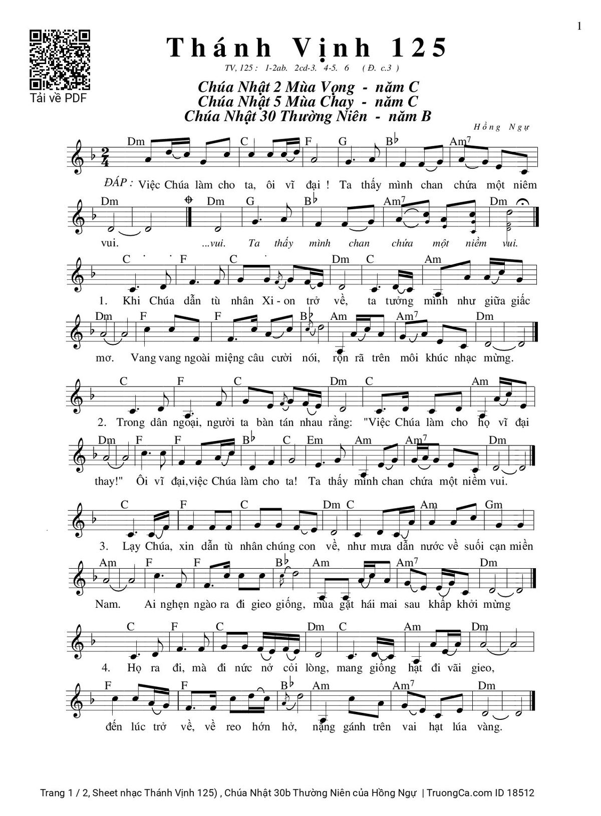 Các sheet PDF cùng tên Thánh Vịnh 125) , Chúa Nhật 30b Thường Niên: