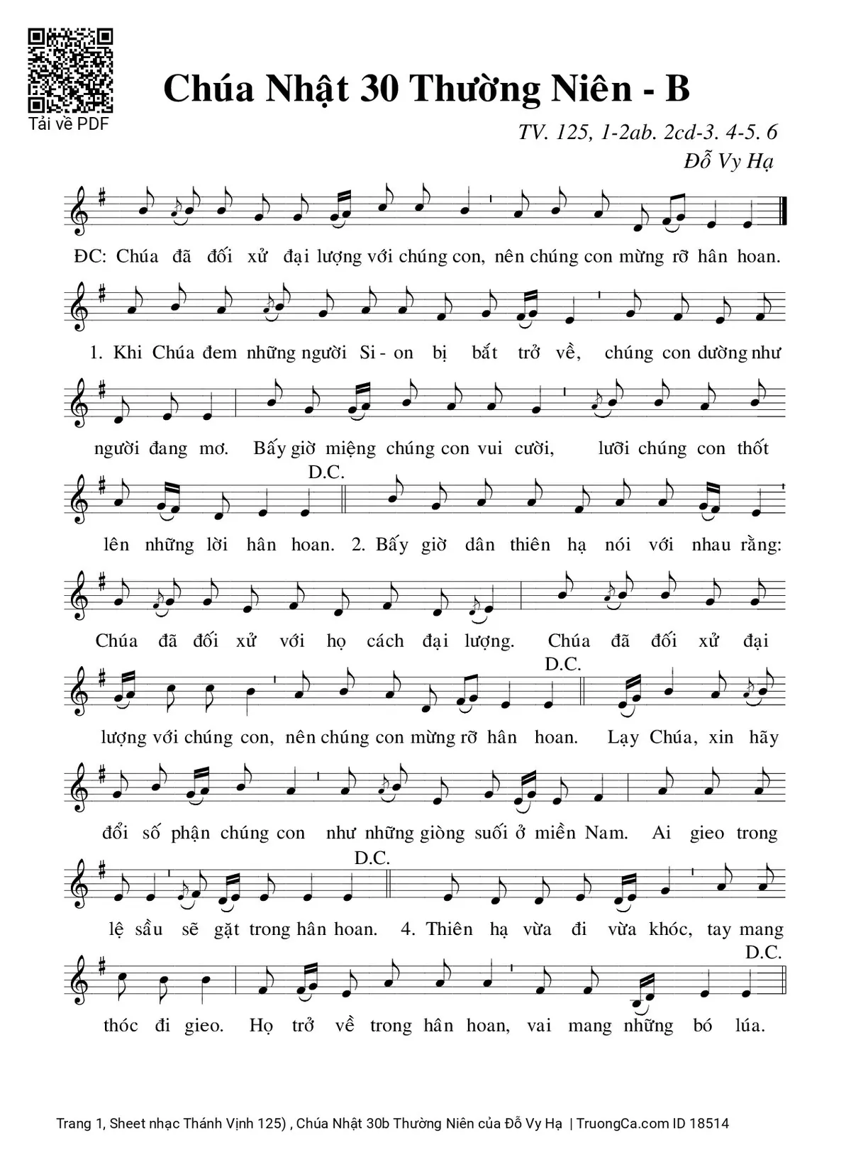 Các sheet PDF cùng tên Thánh Vịnh 125) , Chúa Nhật 30b Thường Niên: