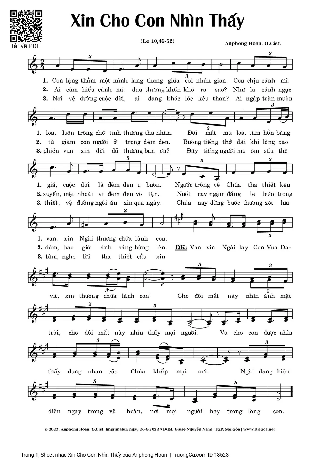 Các sheet PDF cùng tên Xin Cho Con Nhìn Thấy:
