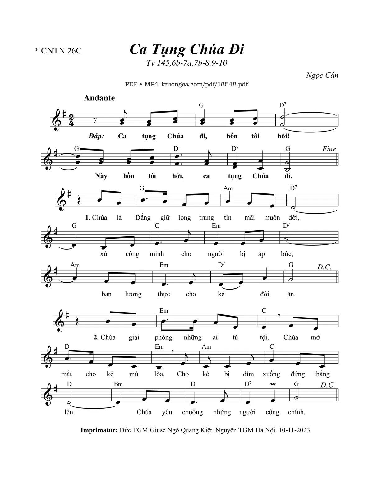 Ngọc Cẩn Ca tụng Chúa đi hồn tôi hỡi Này hồn tôi hỡi [PDF] [Sheet] [Lời H.A] [Mp4/Midi]
