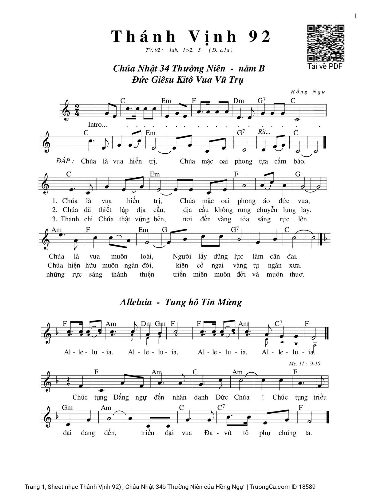 Các sheet PDF cùng tên Thánh Vịnh 92) , Chúa Nhật 34b Thường Niên:
