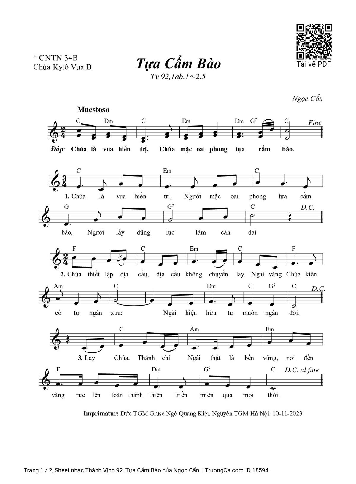 Các sheet PDF tương tự Thánh Vịnh 92, Tựa Cẩm Bào:
