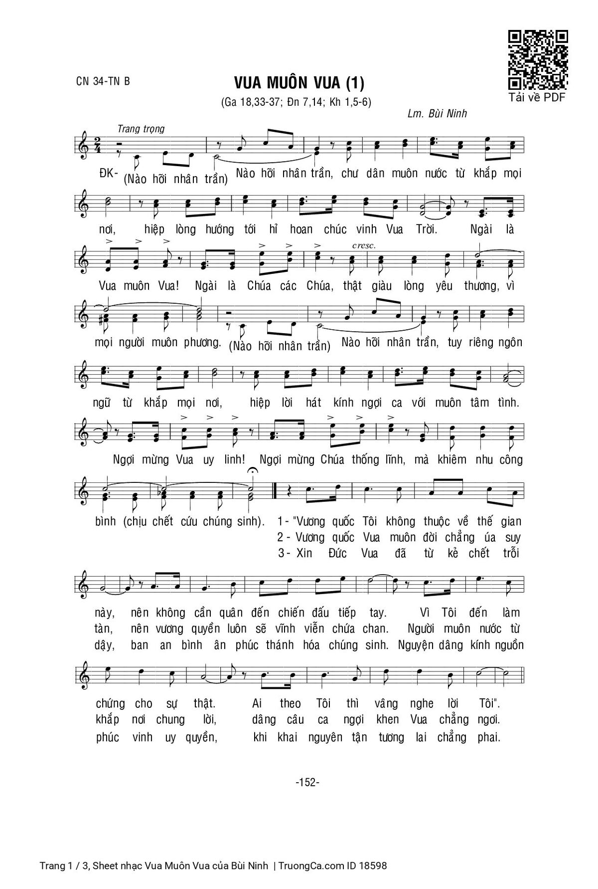 Bùi Ninh Nào hỡi nhân trần chư dân muôn nước từ khắp mọi nơi [PDF] [Sheet] [Lời H.A] [Mp4/Midi]