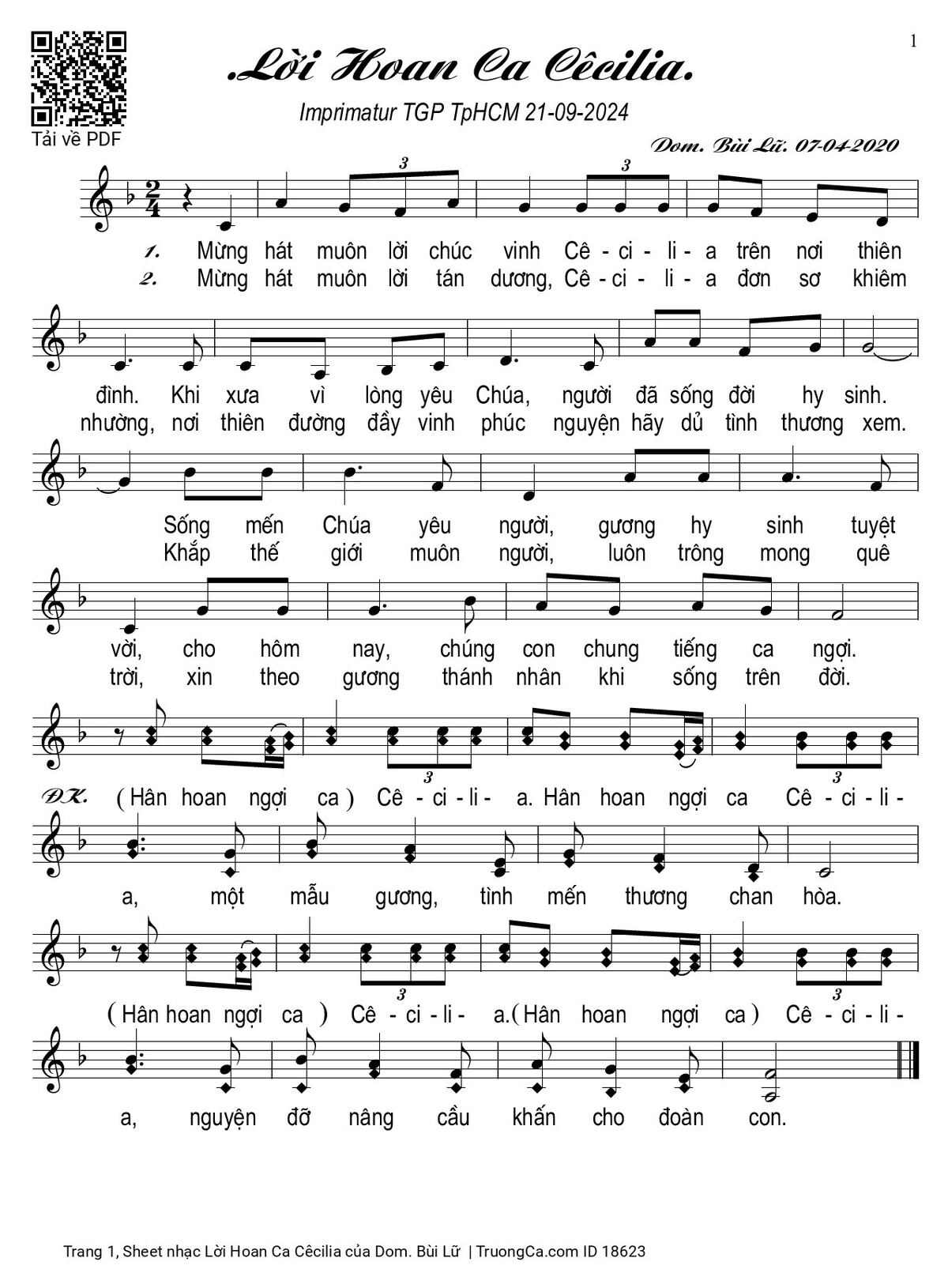 Các sheet PDF tương tự Lời Hoan Ca Cêcilia: