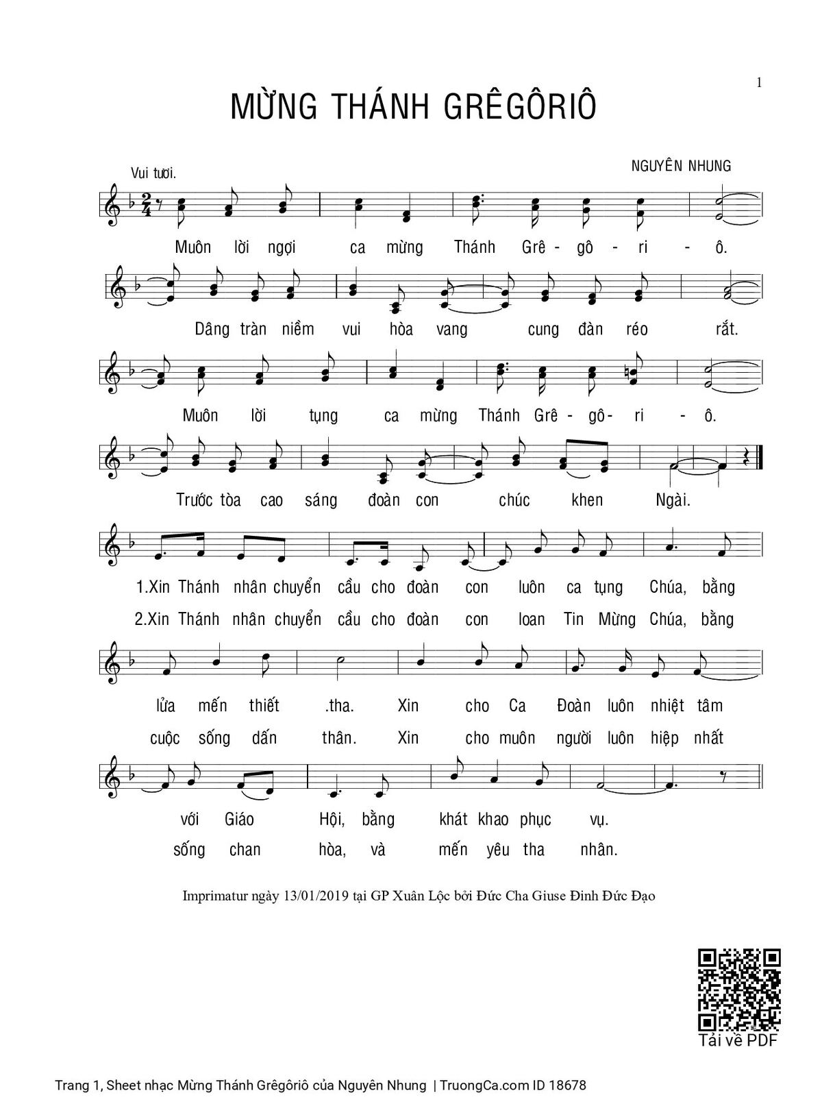 Các sheet PDF tương tự Mừng Thánh Grêgôriô: