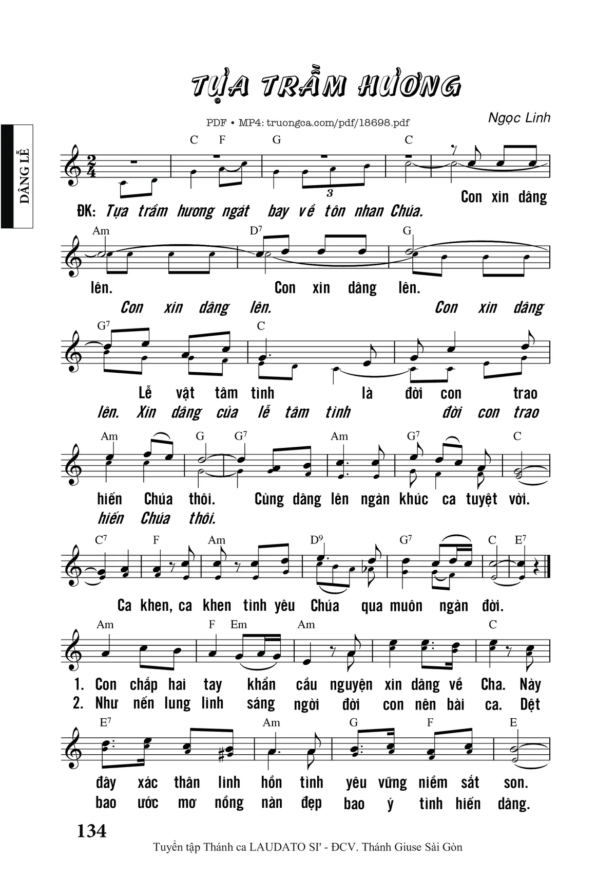 Ngọc Linh Tựa trầm hương ngát bay về tôn nhan Chúa [PDF] [Sheet] [Lời H.A] [Mp4/Midi]