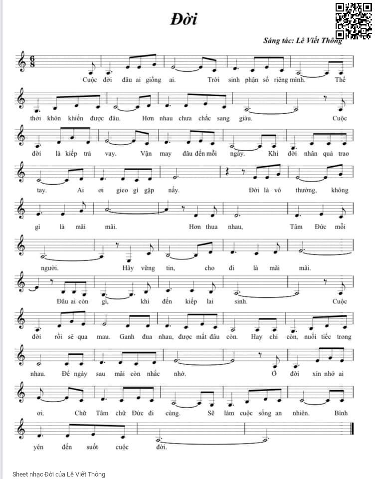 Lê Viết Thông Cuộc đời đâu ai giống ai Trời sinh phận số riêng mình [PDF] [Sheet] [Lời H.A] [Mp4/Midi]