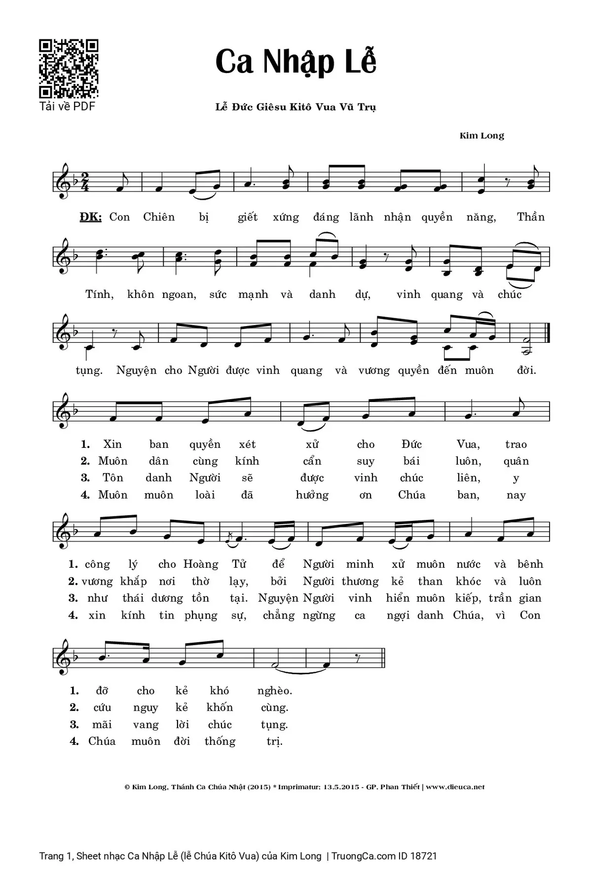 Các sheet PDF cùng tên Ca Nhập Lễ (lễ Chúa Kitô Vua):