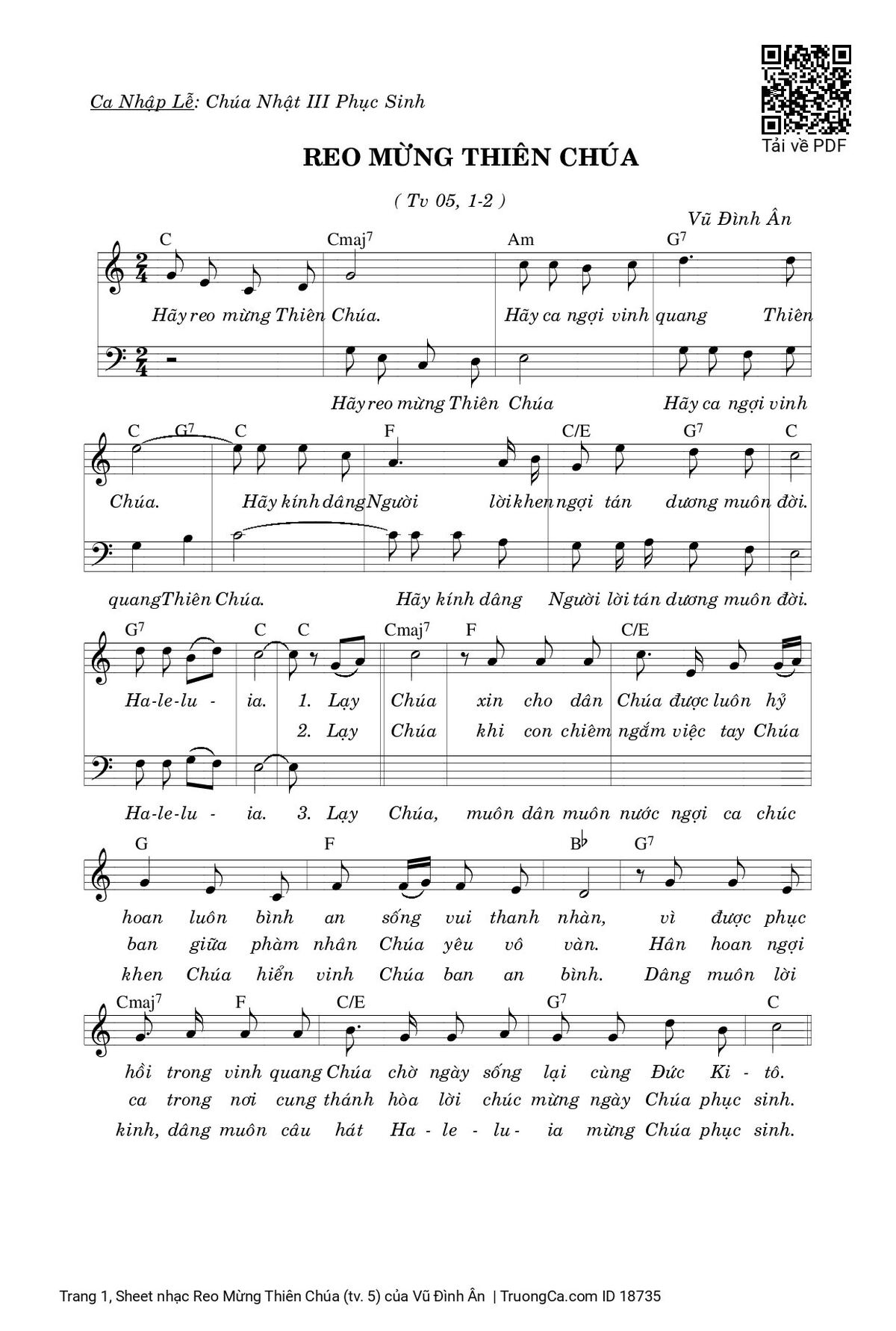 Các sheet PDF tương tự Reo Mừng Thiên Chúa (tv. 5):
