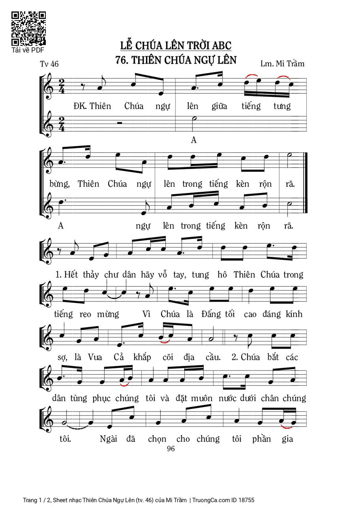 Các sheet PDF tương tự Thiên Chúa Ngự Lên (tv. 46):