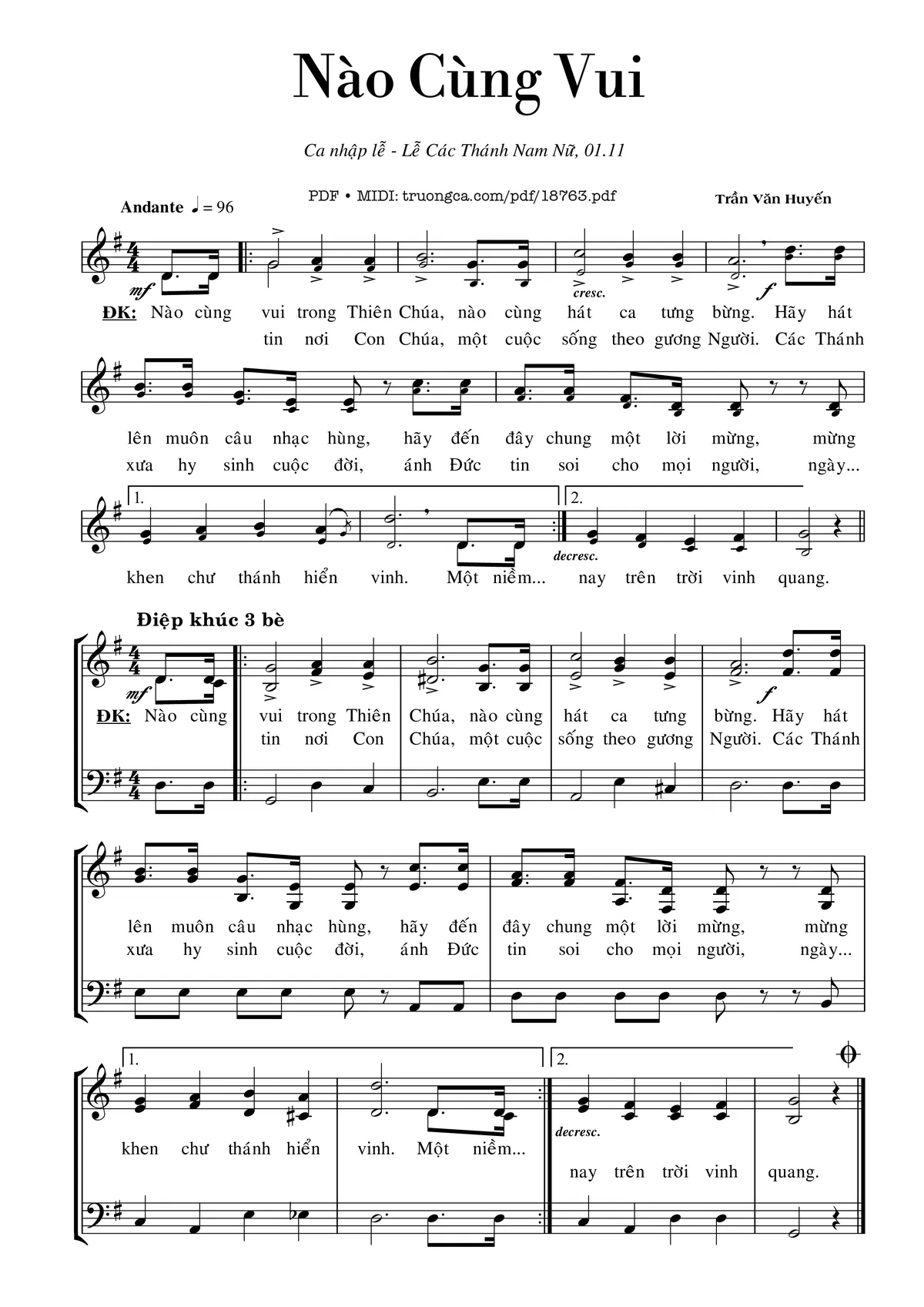 Trần Văn Huyến Nào cùng vui trong Thiên Chúa nào cùng hát ca tưng bừng [PDF] [Sheet] [Lời H.A] [Mp4/Midi]
