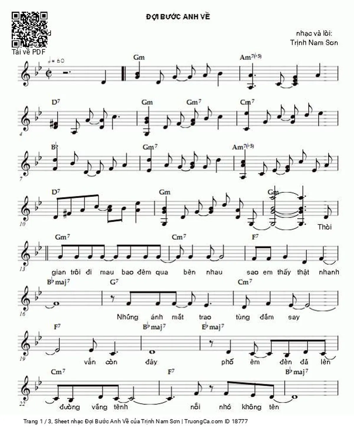 Trang 1 của Sheet nhạc PDF bài hát Đợi Bước Anh Về - Trịnh Nam Sơn