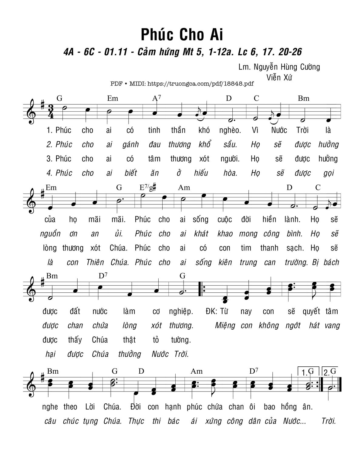 Nguyễn Hùng Cường & Viễn Xứ Phúc cho ai có tinh thần khó nghèo Vì Nước Trời là của họ mãi mãi [PDF] [Sheet] [Lời H.A] [Mp4/Midi]