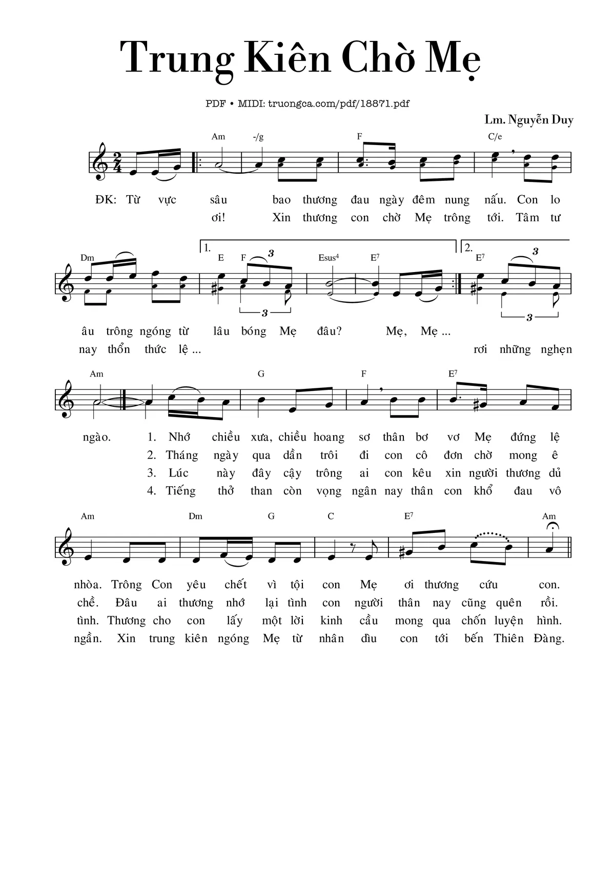 Các sheet PDF tương tự Trung Kiên Chờ Mẹ: