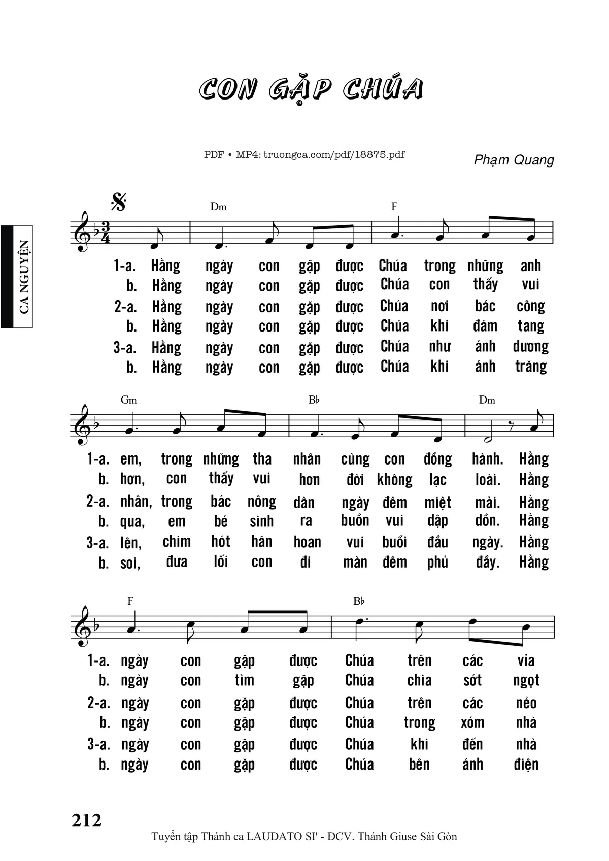 1b. Hằng ngày con gặp được Chúa con thấy vui hơn, con thấy vui hơn đời không lạc loài. Hằng ngày con tìm gặp Chúa chia sớt ngọt bùi san sẻ áo cơm sưởi ấm lòng người.