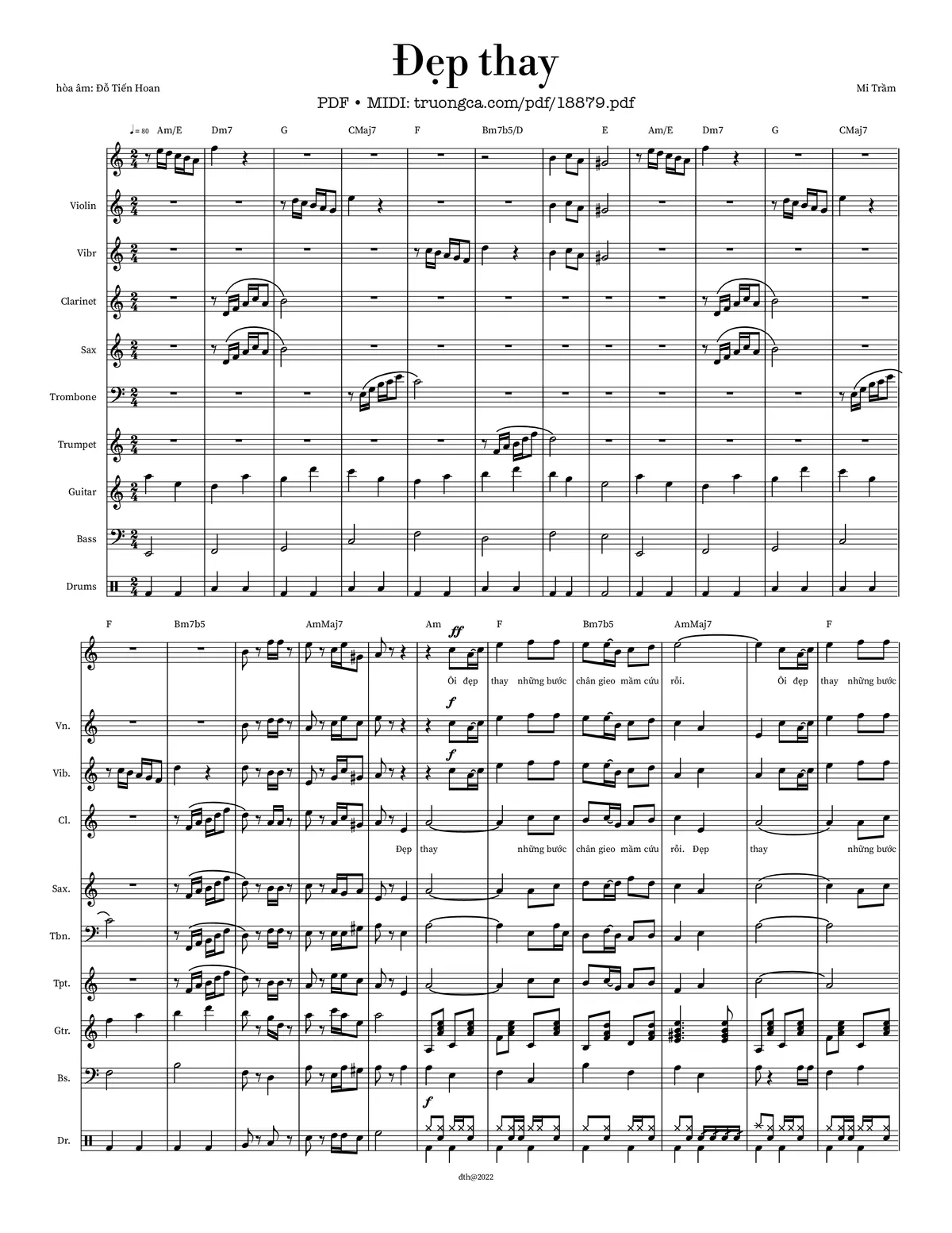 Chọn nút dấu + để tăng tông lên nửa cung, nút dấu - để giảm tông xuống nửa cung. Rê chuột vào hợp âm để xem các thế bấm hợp âm của bài hát Đẹp thay, ôi đẹp thay, Hợp xướng.