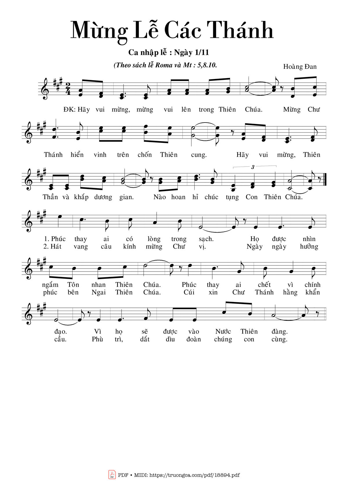 Các sheet PDF tương tự Mừng Lễ Các Thánh:
