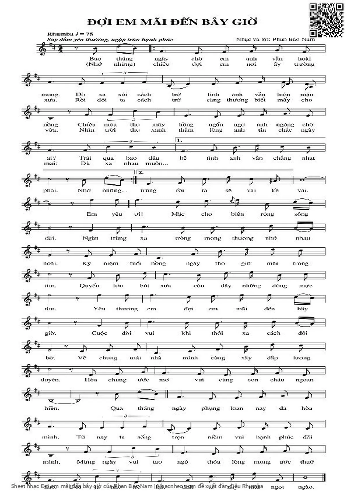 Phan Bảo Nam Bao tháng ngày chờ em anh vẫn hoài mong [PDF] [Sheet] [Lời H.A] [Mp4/Midi]