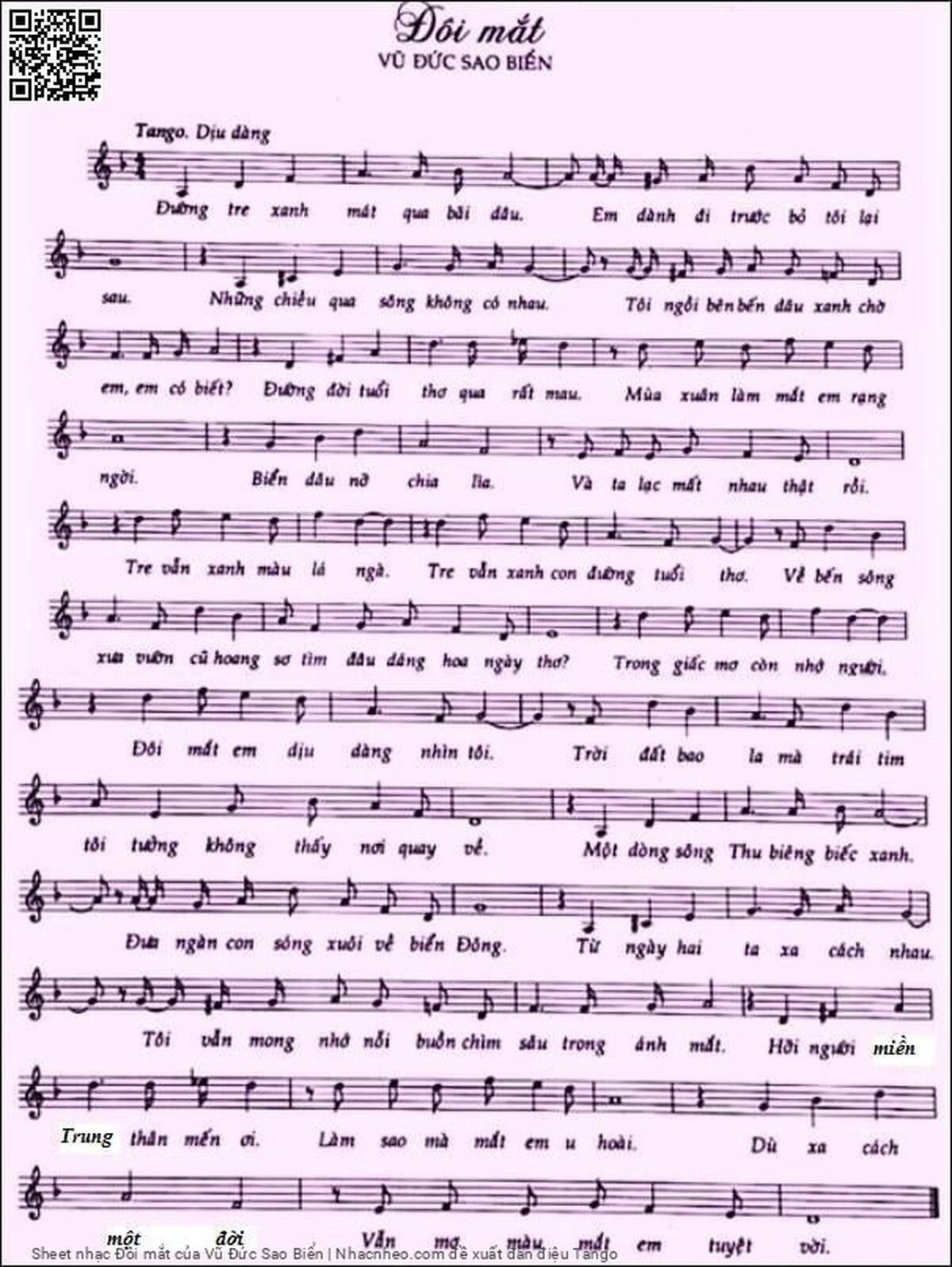 Chọn nút dấu + để tăng tông lên nửa cung, nút dấu - để giảm tông xuống nửa cung. Rê chuột vào hợp âm để xem các thế bấm hợp âm của bài hát Đôi mắt.