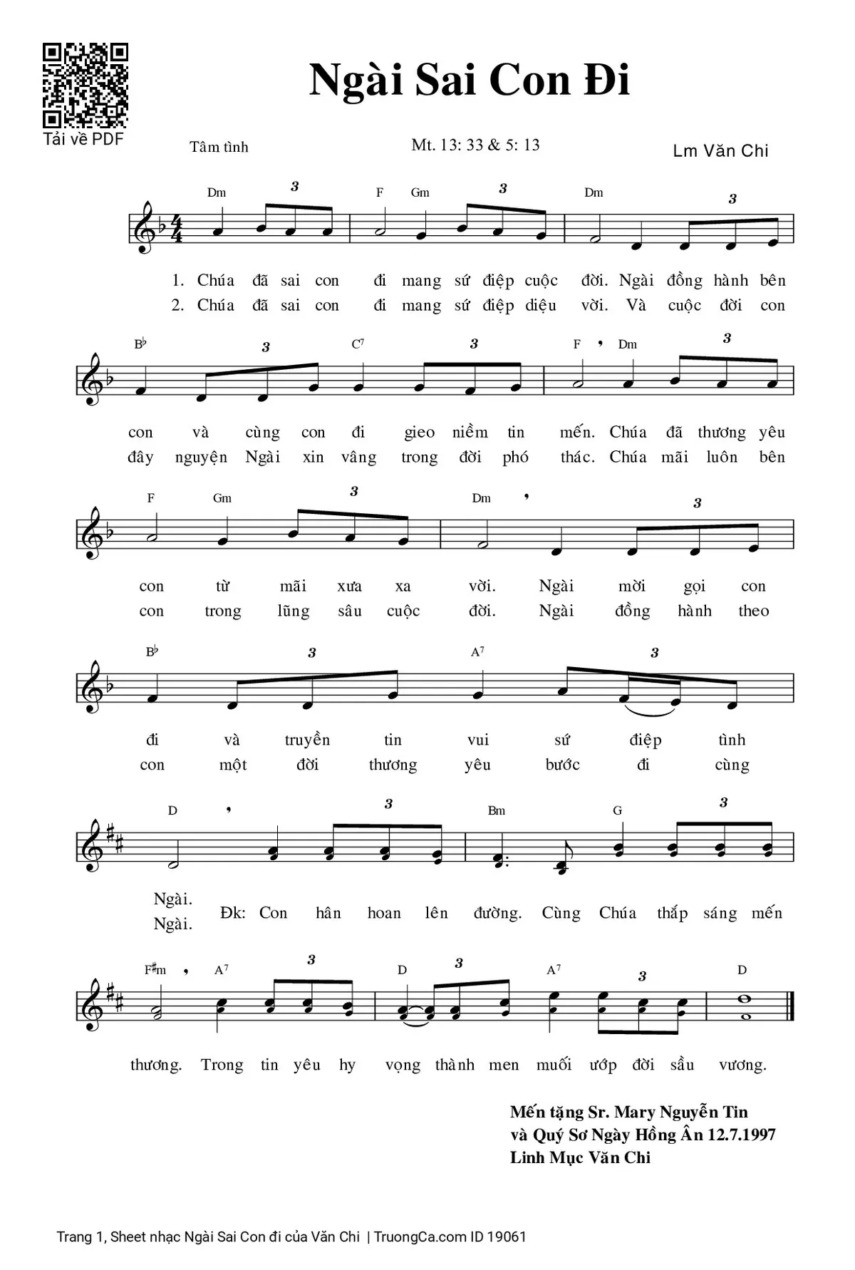Văn Chi Chúa sai con đi mang sứ điệp cuộc đời [PDF] [Sheet] [Lời H.A] [Mp4/Midi]
