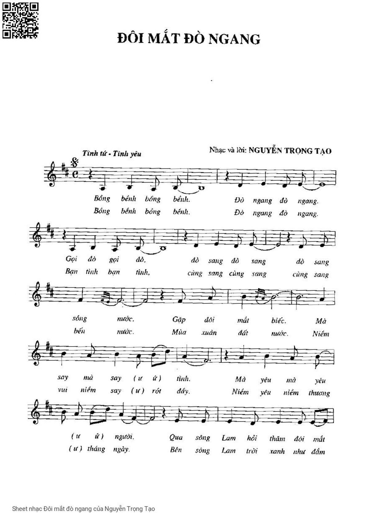 Nguyễn Trọng Tạo Bồng bềnh bồng bềnh đò ngang đò ngang [PDF] [Sheet] [Lời H.A] [Mp4/Midi]