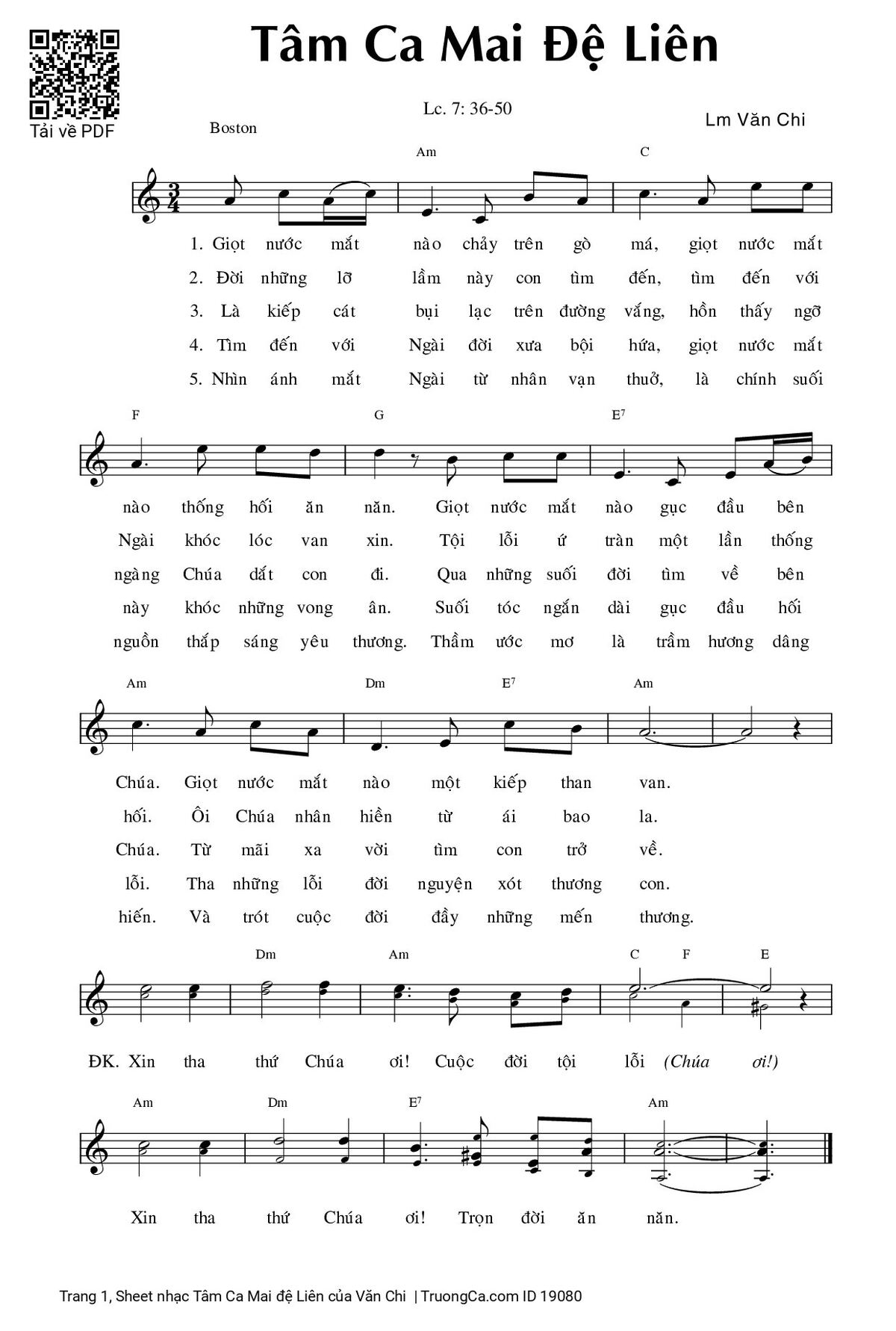 Điệp khúc: Xin tha thứ Chúa ơi cuộc đời tội lỗi. Xin tha thứ Chúa ơi trọn đời ăn năn.