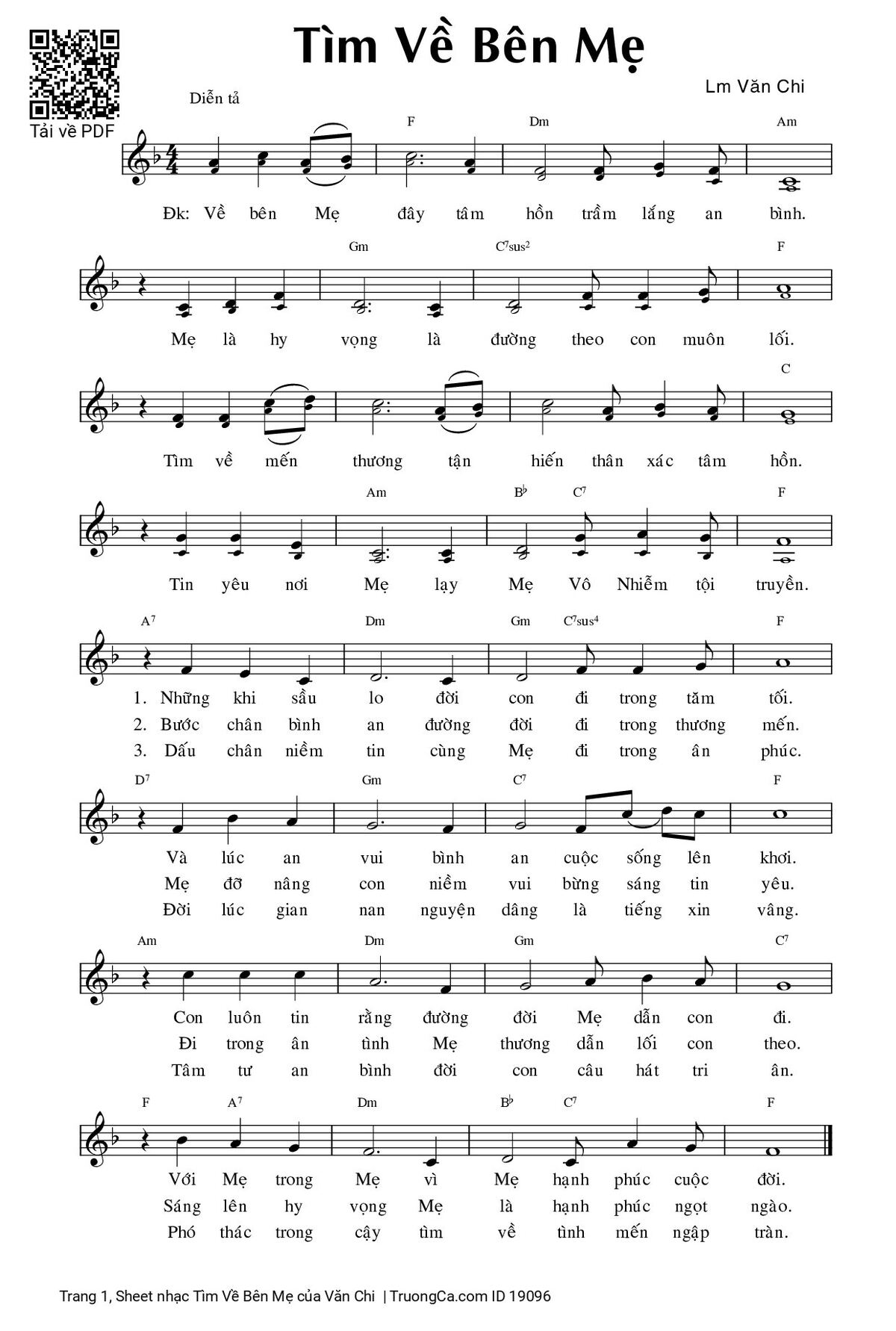 Văn Chi Về bên Mẹ đây tâm hồn trầm lắng an bình [PDF] [Sheet] [Lời H.A] [Mp4/Midi]