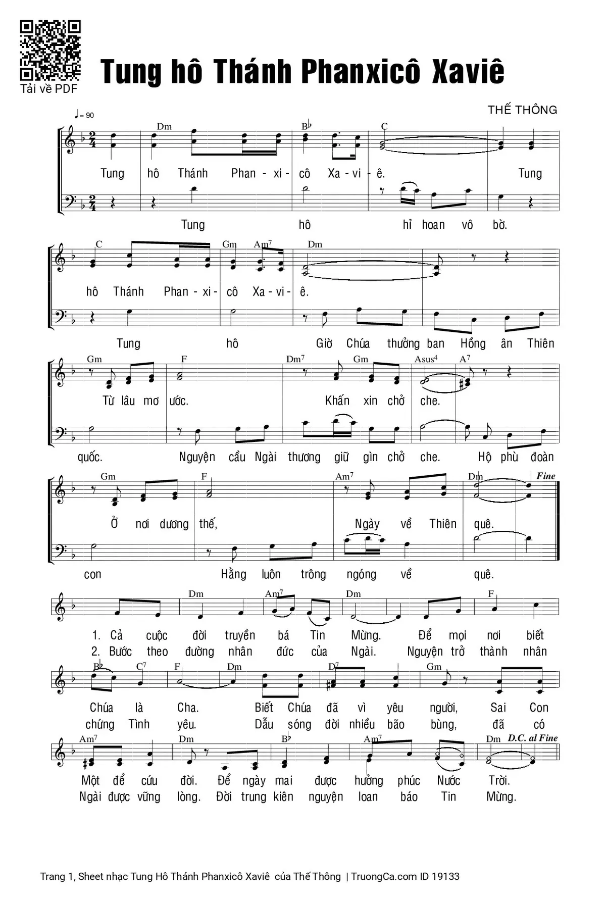 Các sheet PDF tương tự Tung Hô Thánh Phanxicô Xaviê :