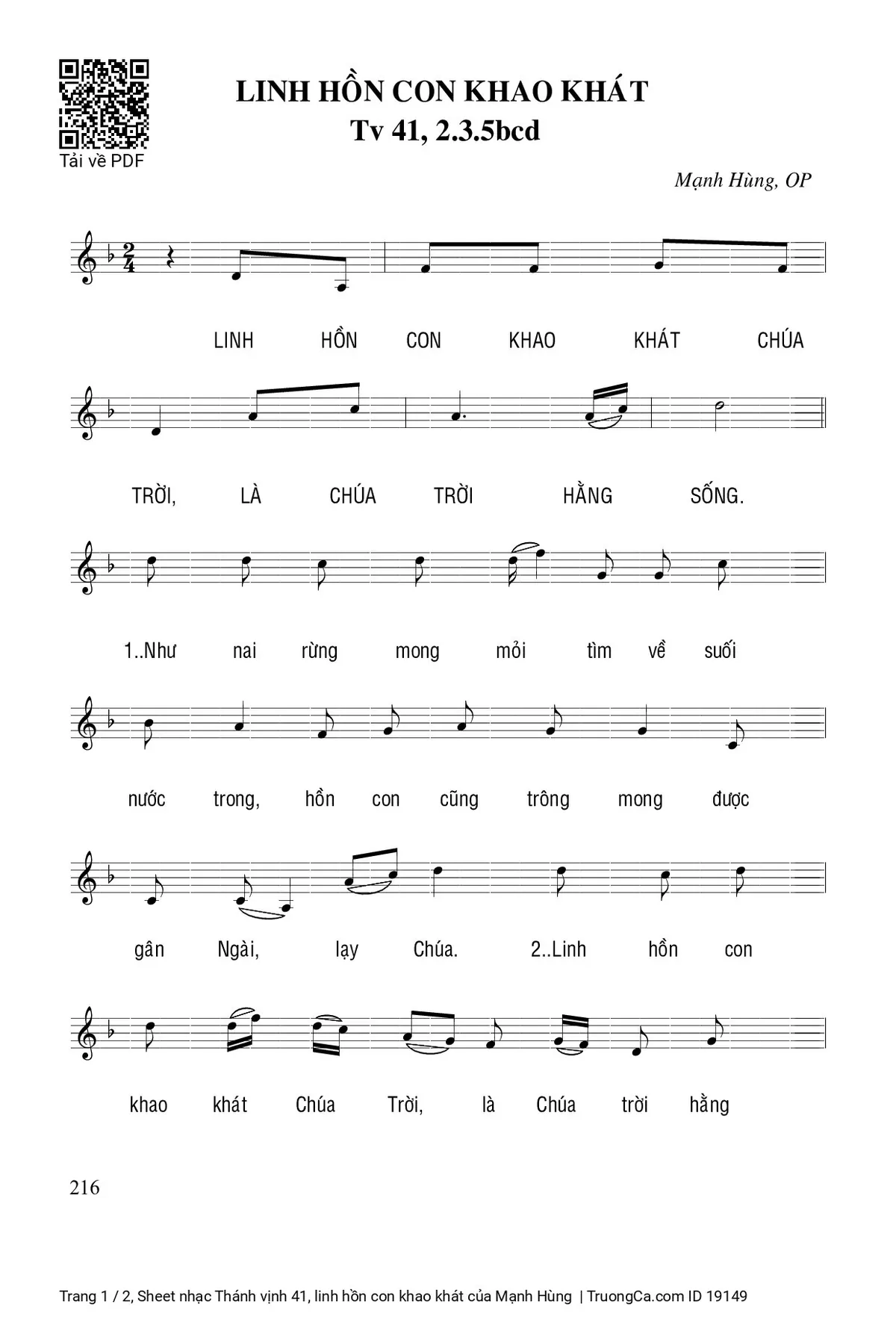 Các sheet PDF tương tự Thánh vịnh 41, linh hồn con khao khát: