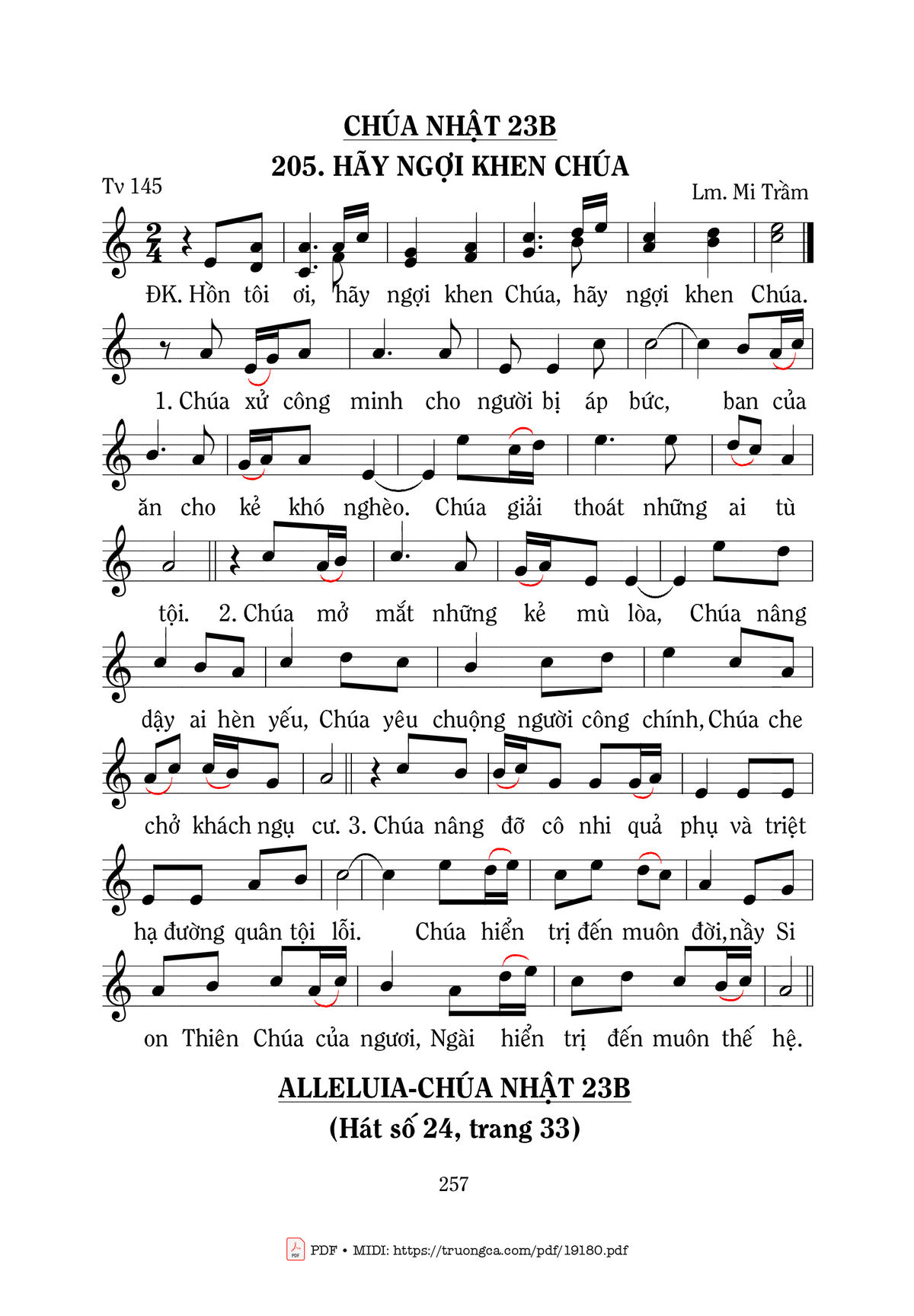 Mi Trầm Hồn tôi ơi hãy ngợi khen Chúa hãy ngợi khen Chúa [PDF] [Sheet] [Lời H.A] [Mp4/Midi]