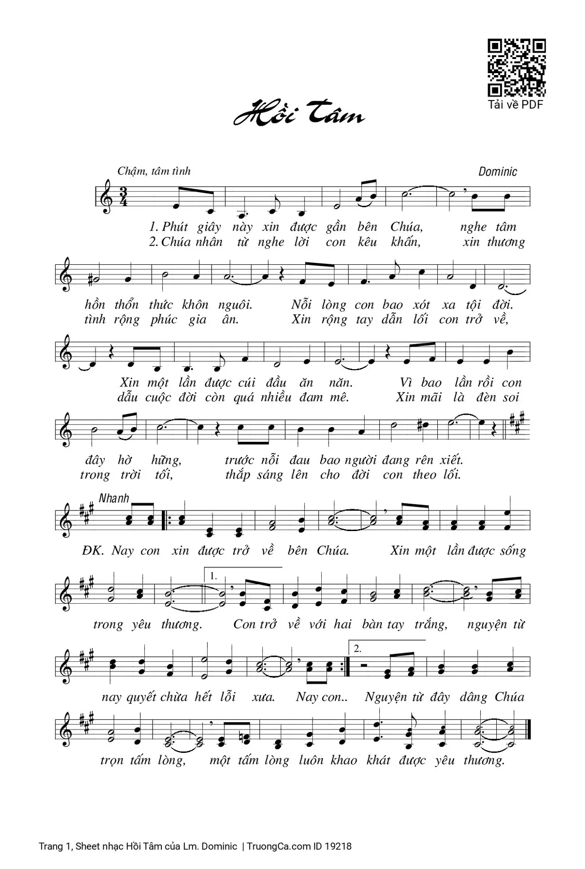 Chọn nút dấu + để tăng tông lên nửa cung, nút dấu - để giảm tông xuống nửa cung. Rê chuột vào hợp âm để xem các thế bấm hợp âm của bài hát Hồi Tâm.