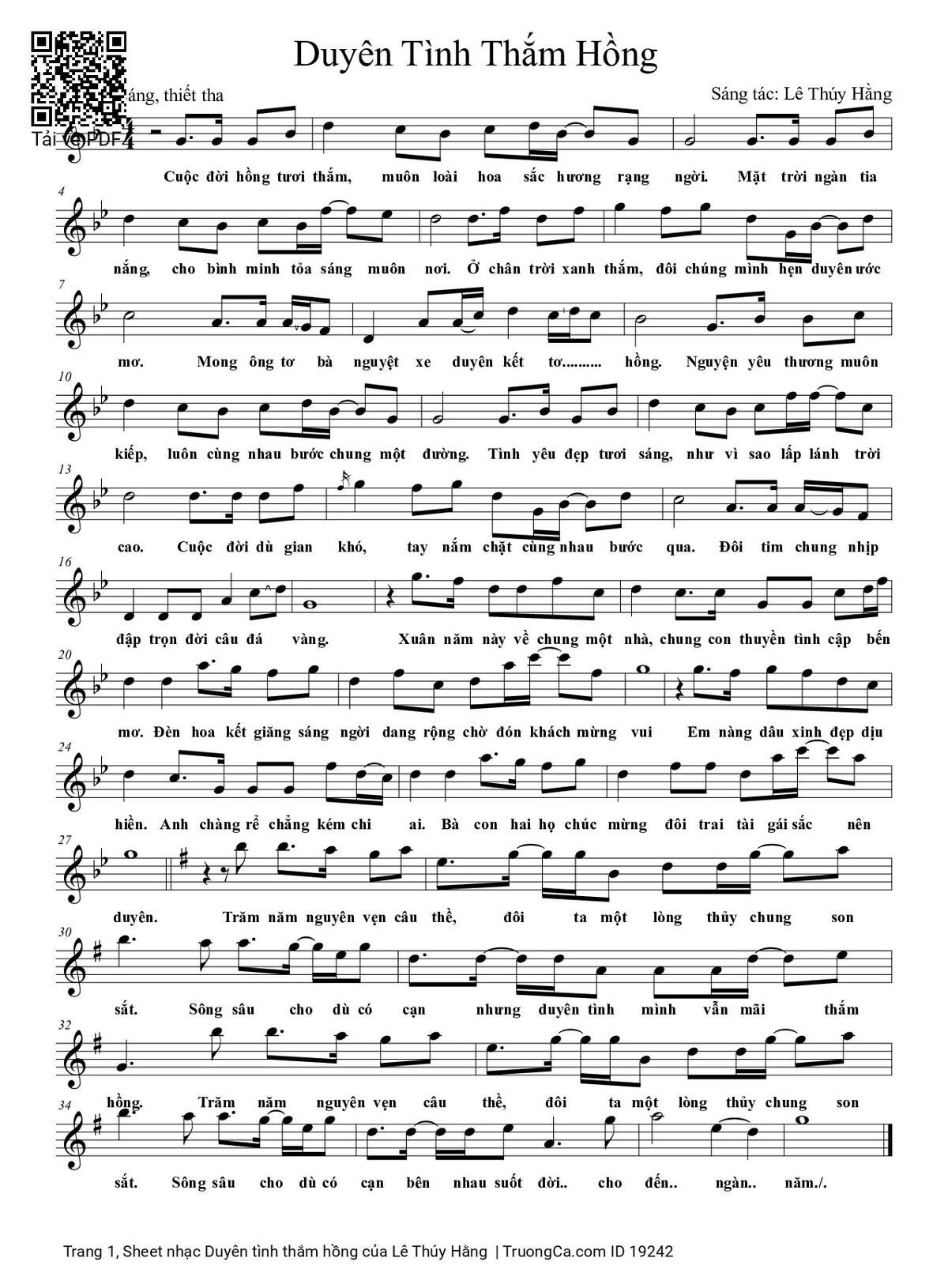 Lê Thúy Hằng Cuộc đời hồng tươi thắm muôn loài hoa sắc hương rạng ngời [PDF] [Sheet] [Lời H.A] [Mp4/Midi]