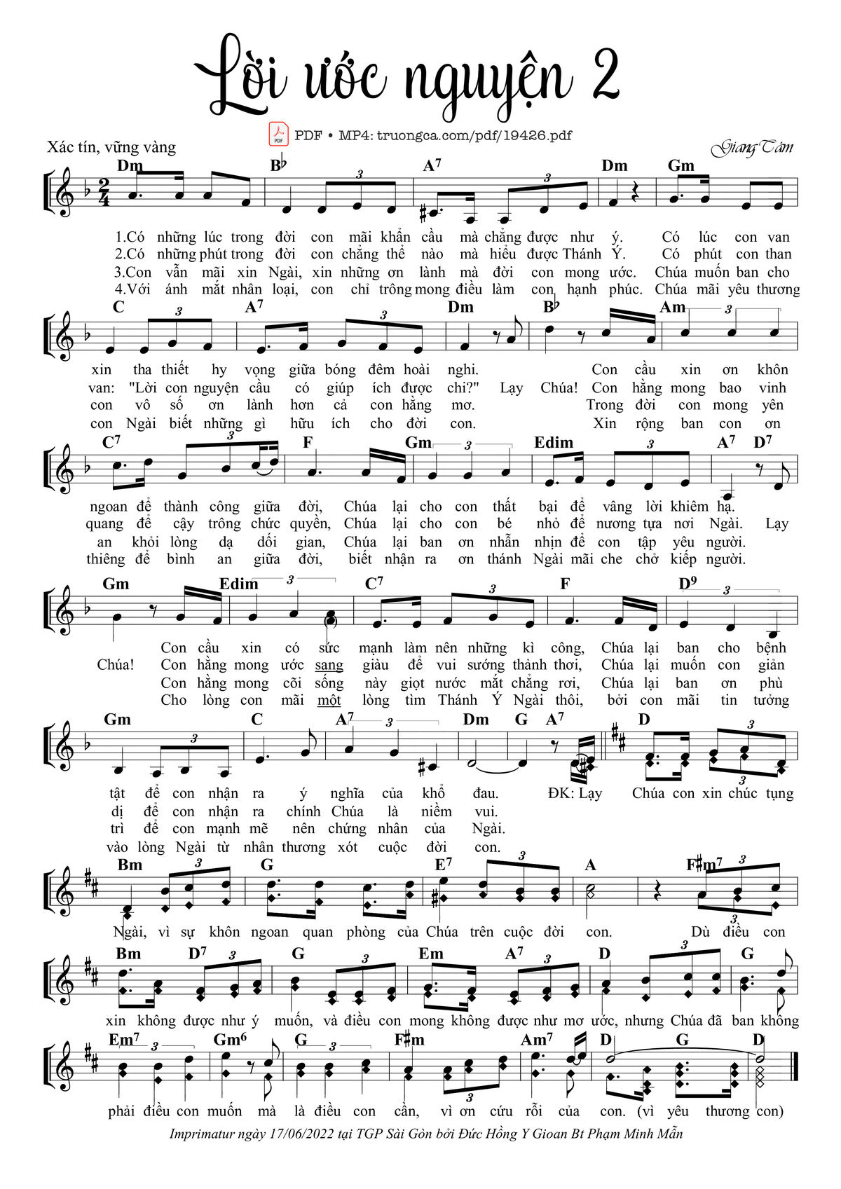 Các sheet PDF tương tự Lời Ước Nguyện 2: