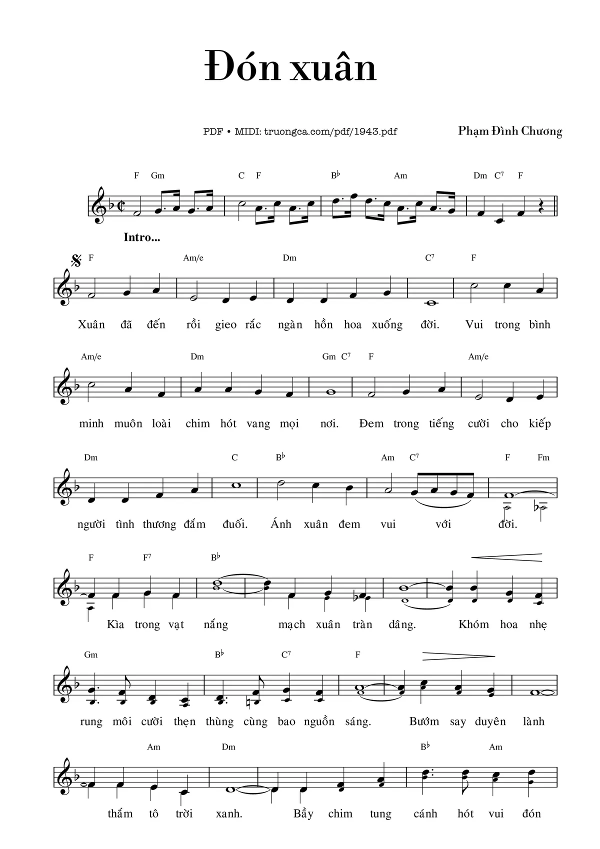 Phạm Đình Chương Xuân đã đến rồi gieo rắc ngàn hồn hoa xuống đời [PDF] [Sheet] [Lời H.A] [Mp4/Midi]