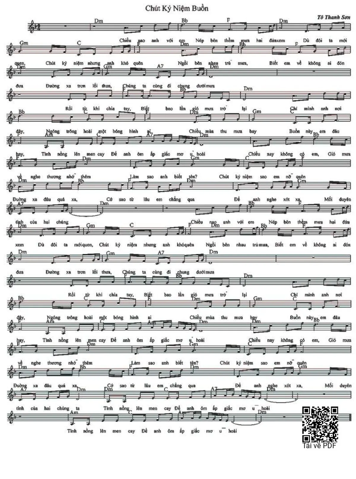 Sheet Chút Kỷ Niệm Buồn PDF, hợp âm