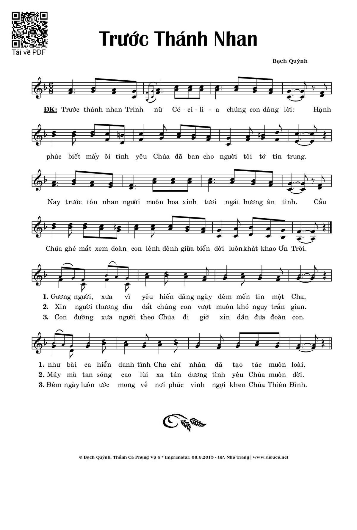 🌾 Imprimatur, Thông tin chuẩn nhận dùng trong phụng vụ Công Giáo: Thánh Cécilia – Imprimatur – Gp. 08.06.2015