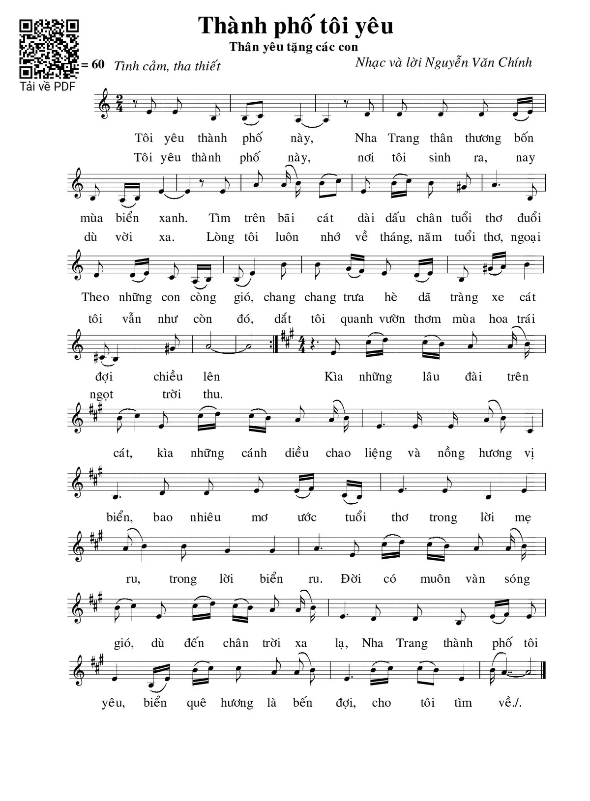 Nguyễn Văn Chính Tôi yêu thành phố này Nha Trang thân thương bốn mùa biển xanh [PDF] [Sheet] [Lời H.A] [Mp4/Midi]