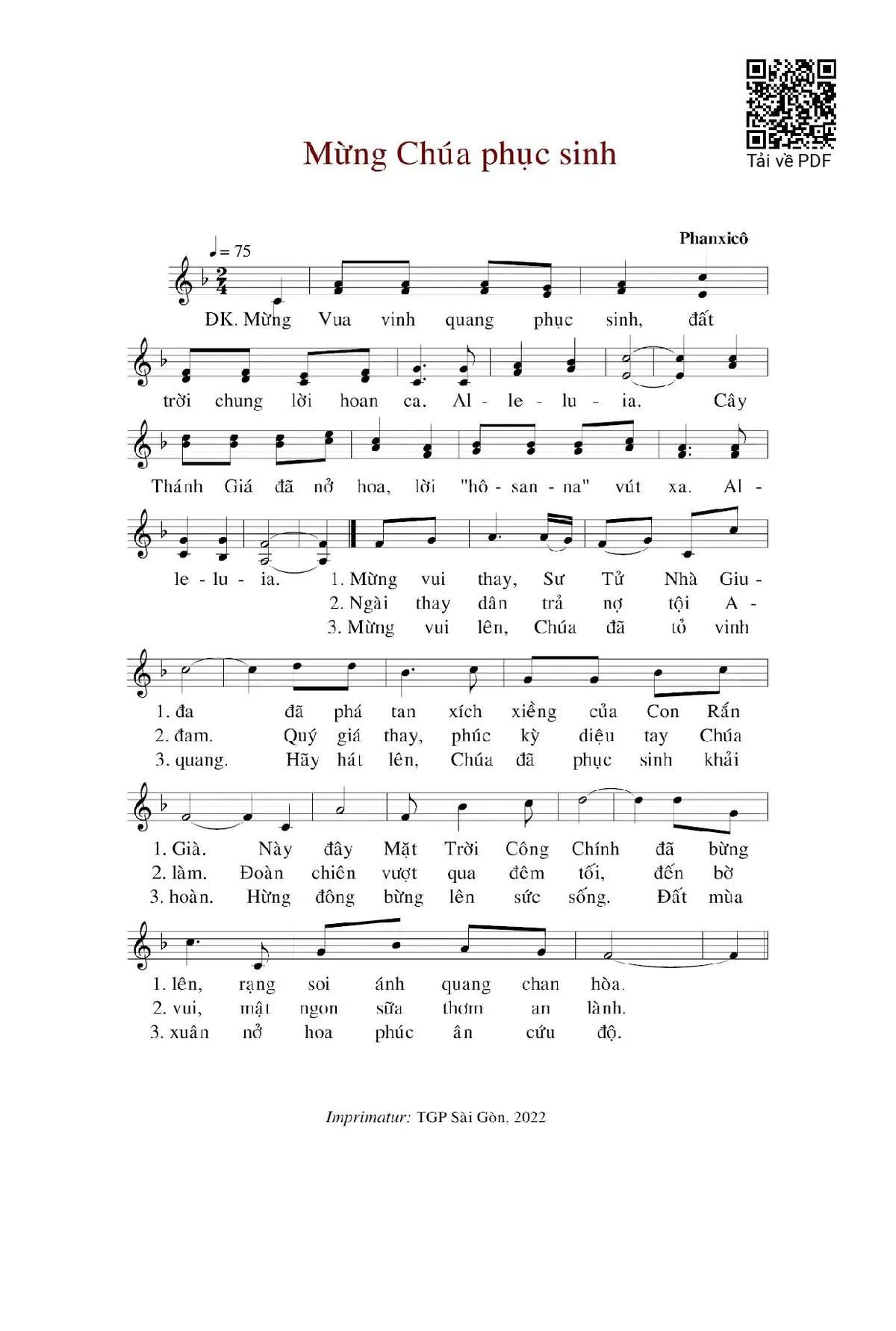 Các sheet PDF cùng tên Mừng Chúa Phục Sinh: