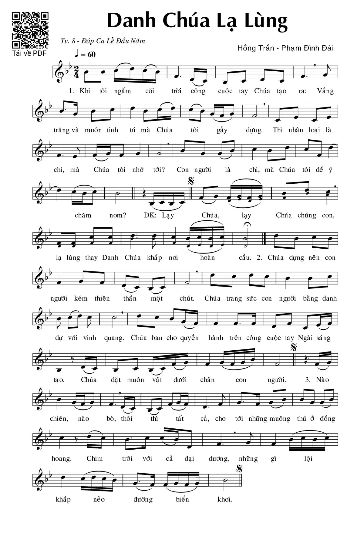 Trang 1 của Sheet nhạc PDF bài hát Danh Chúa lạ lùng (Thánh Vịnh 8) - Phạm Đình Đài