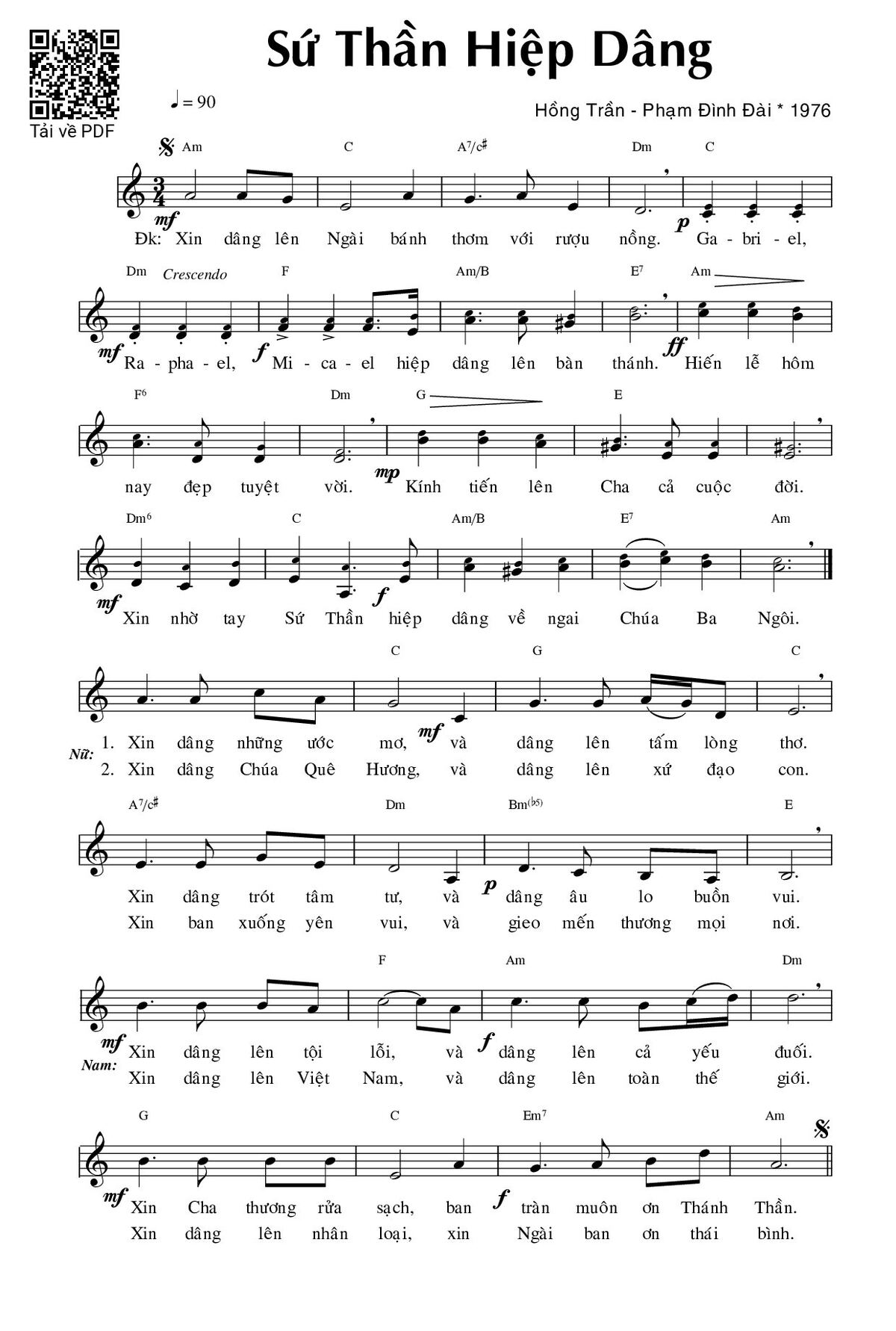 Trang 1 của Sheet nhạc PDF bài hát Sứ thần hiệp dâng - Phạm Đình Đài